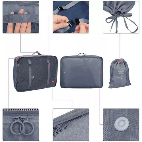 این ست شامل 7 کیف در ابعاد مختلف است تا بتوانید وسایل کوچک و بزرگ خود را بهصورت دستهبندیشده در چمدان قرار دهید.
