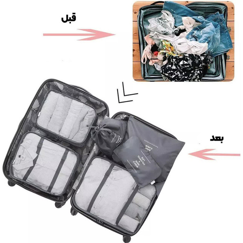 این مجموعه کاربردی با طراحی هوشمندانه و ابعاد متنوع، به شما کمک میکند لباسها، کفشها، لوازم شخصی و وسایل سفر را بهصورت کاملاً منظم در چمدان قرار دهید.